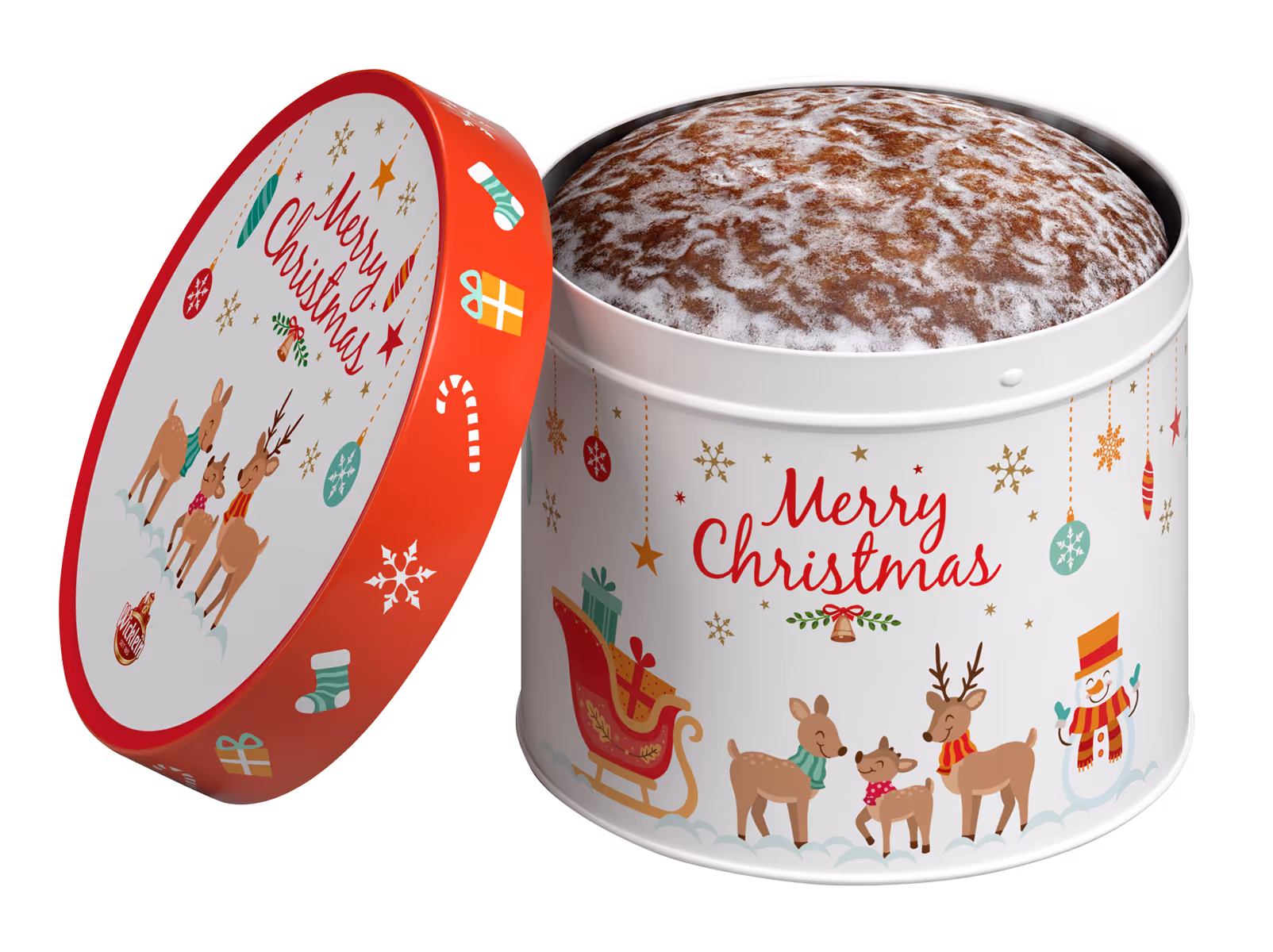Feine Nürnberger Oblaten-Lebkuchen, 2-fach sortiert mit feinem Zuckerguss oder bester dunkler Schokolade überzogen – verpackt in einer hochwertigen weißen Blech-Dose mit winterlichen Rentier-Motiven. Ideal zum Verschenken.